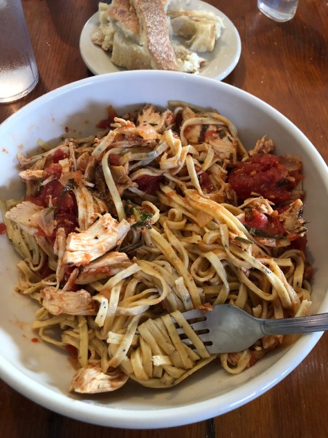 After picking up my race packet I got to eat homemade black pepper fettuccine with chicken and it was glorious.