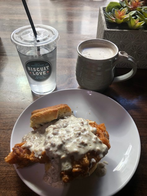 I think this was called the East Nasty from a restaurant called Biscuit Love, combined with a chai latte.