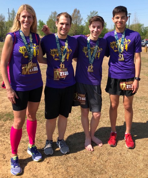 Well I finally dragged my tired, hungry and honestly cranky self towards the finish. It got better there. My kids decided to run me in which was really special. Bond thought it was so cool to cross the finish line with me and promptly took my medal.